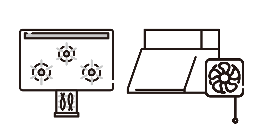 ガスコンロ・レンジフード・換気扇などの油汚れ部分には2倍希釈(原液1:水1)を直接スプレー後、数分置いてから浮いた汚れをペーパータオルや布巾などで拭き取ります。